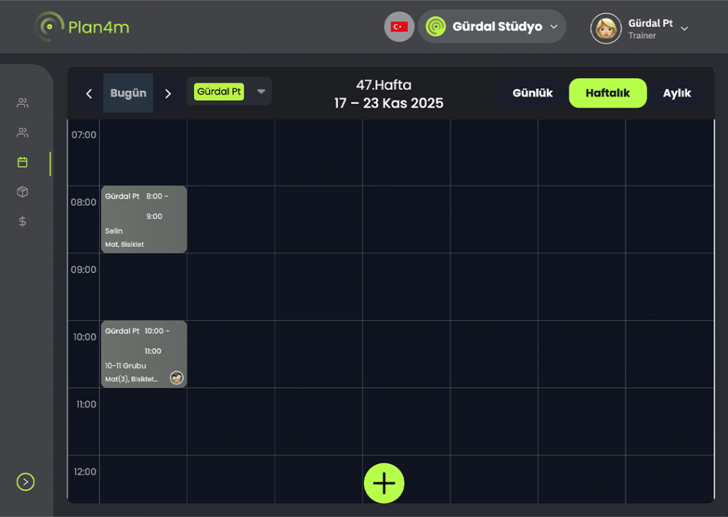 Plan4M’s modern and easy-to-use interface allows you to manage all processes in your studio from a single screen. From class schedules to trainer calendars, from member progress to real-time performance reports, everything you need is at your fingertips.